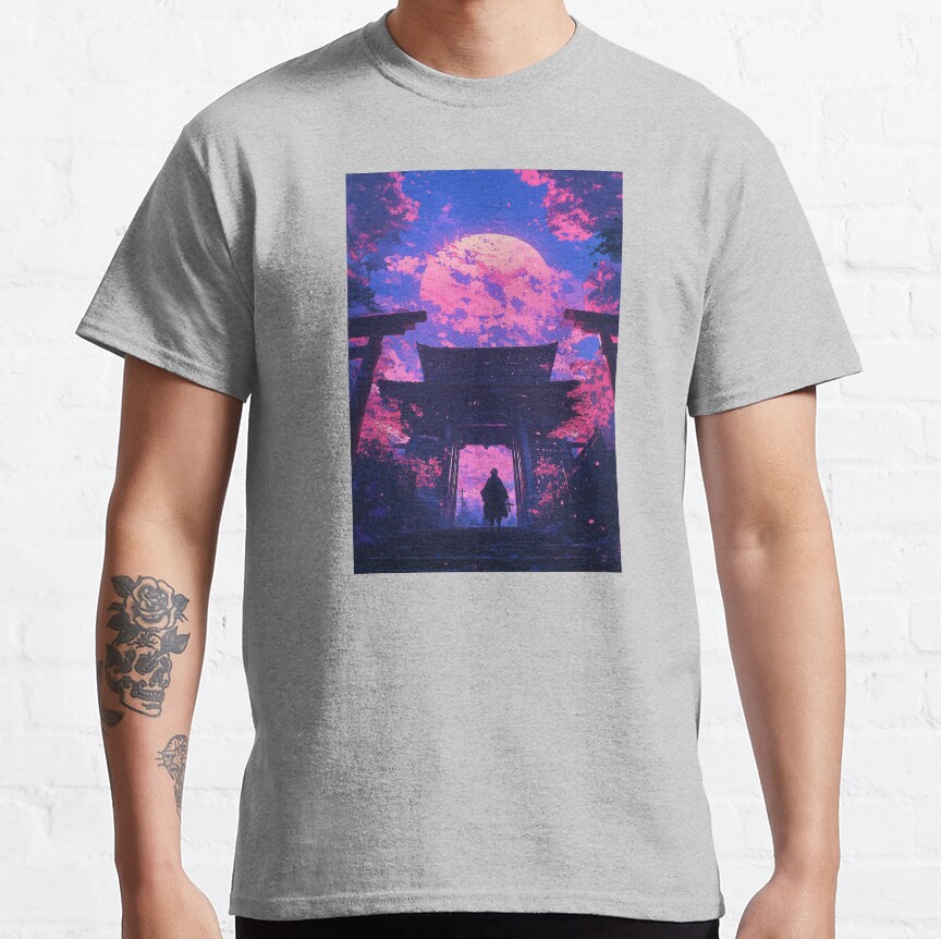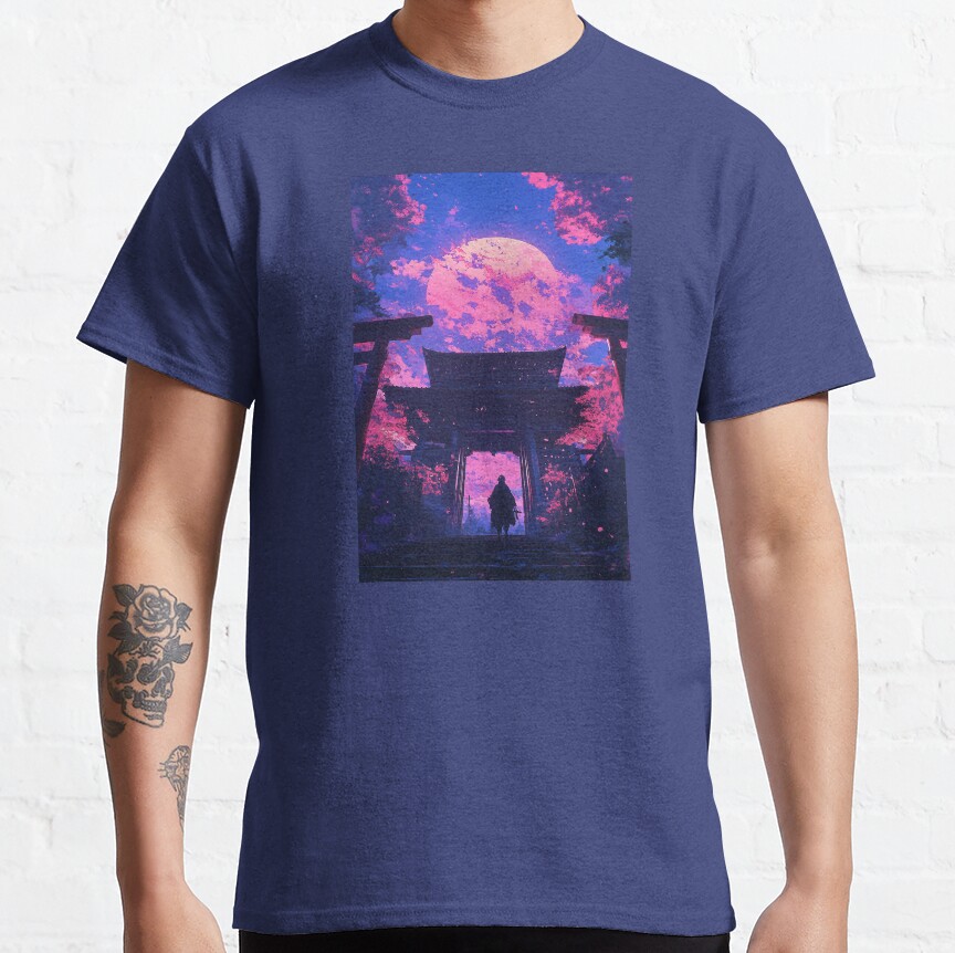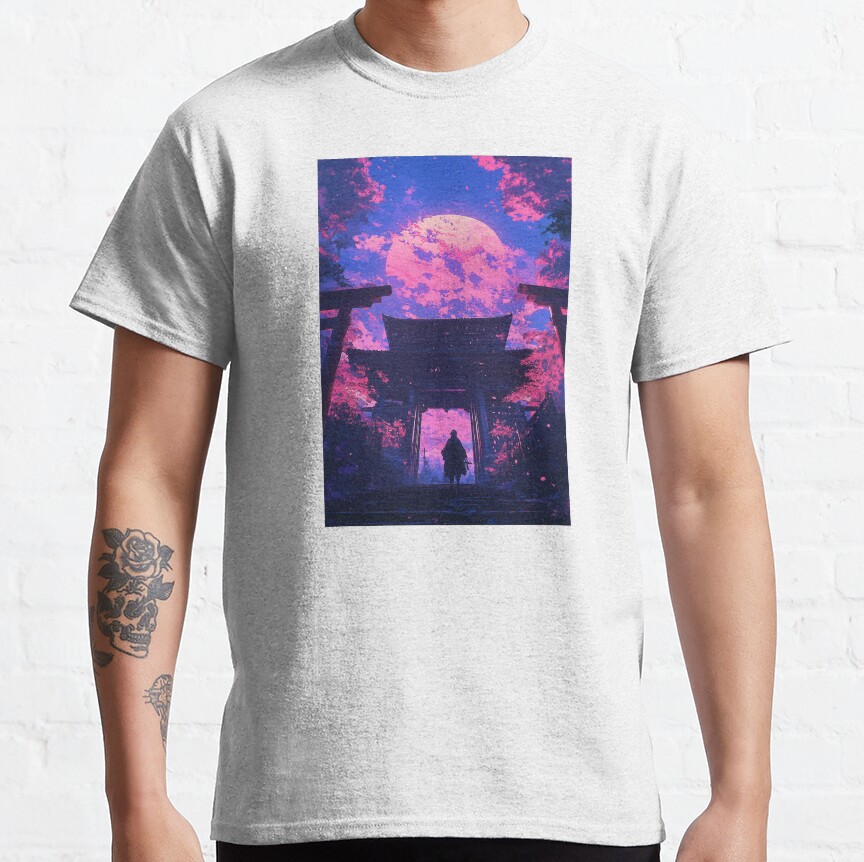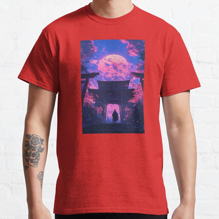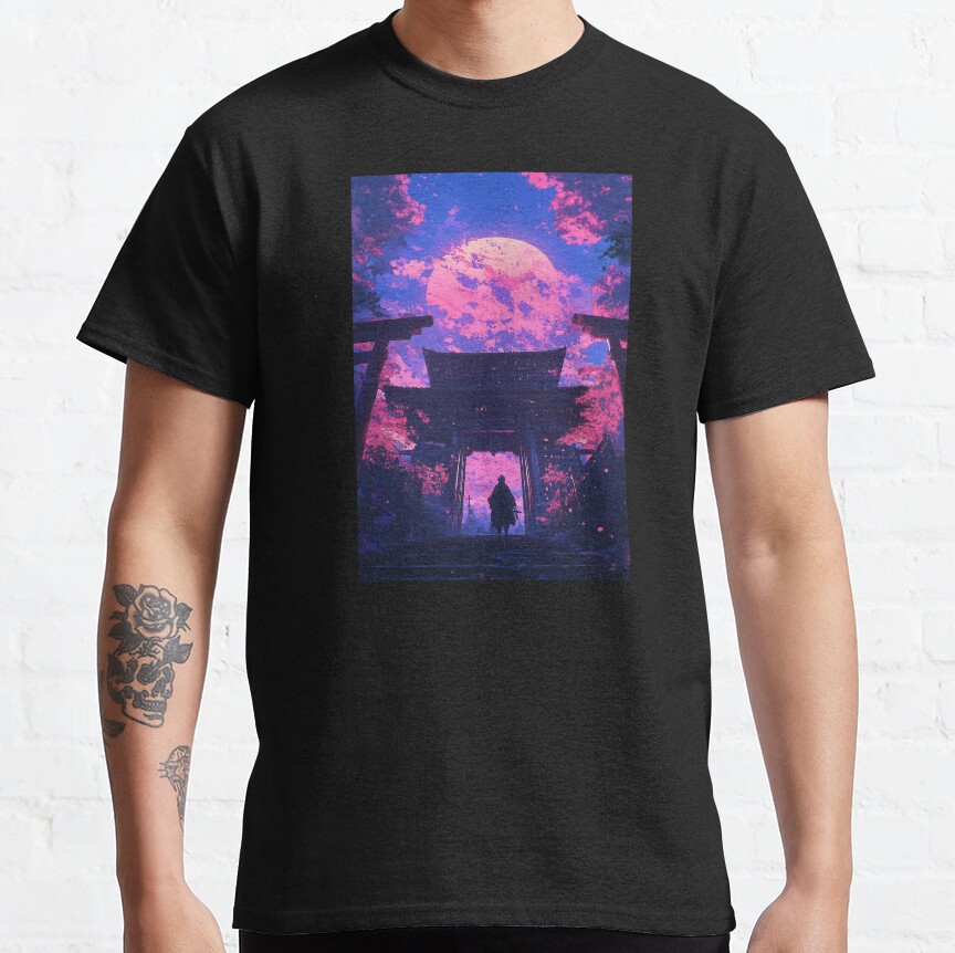 Cherry Blossom Moonrise At Ancient Japanese Temple T-Shirt