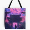 Cherry Blossom Moonrise At Ancient Japanese Temple Tote Bag